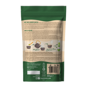 - A Összetevők: kókuszvirág-cukor, matcha tea por (20%), természetes édesgyökér kivonat (1%), természetes menta aroma (1%)